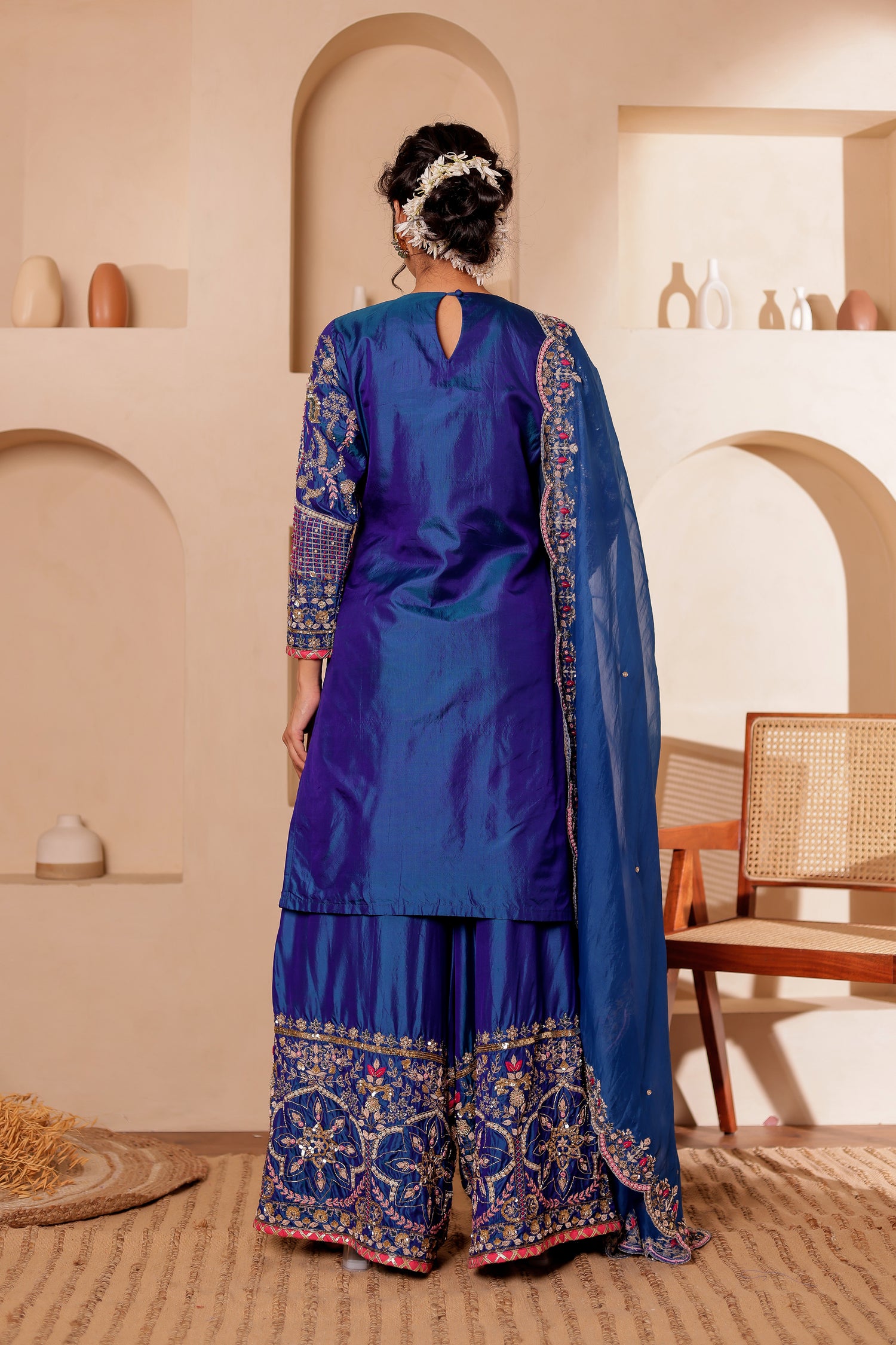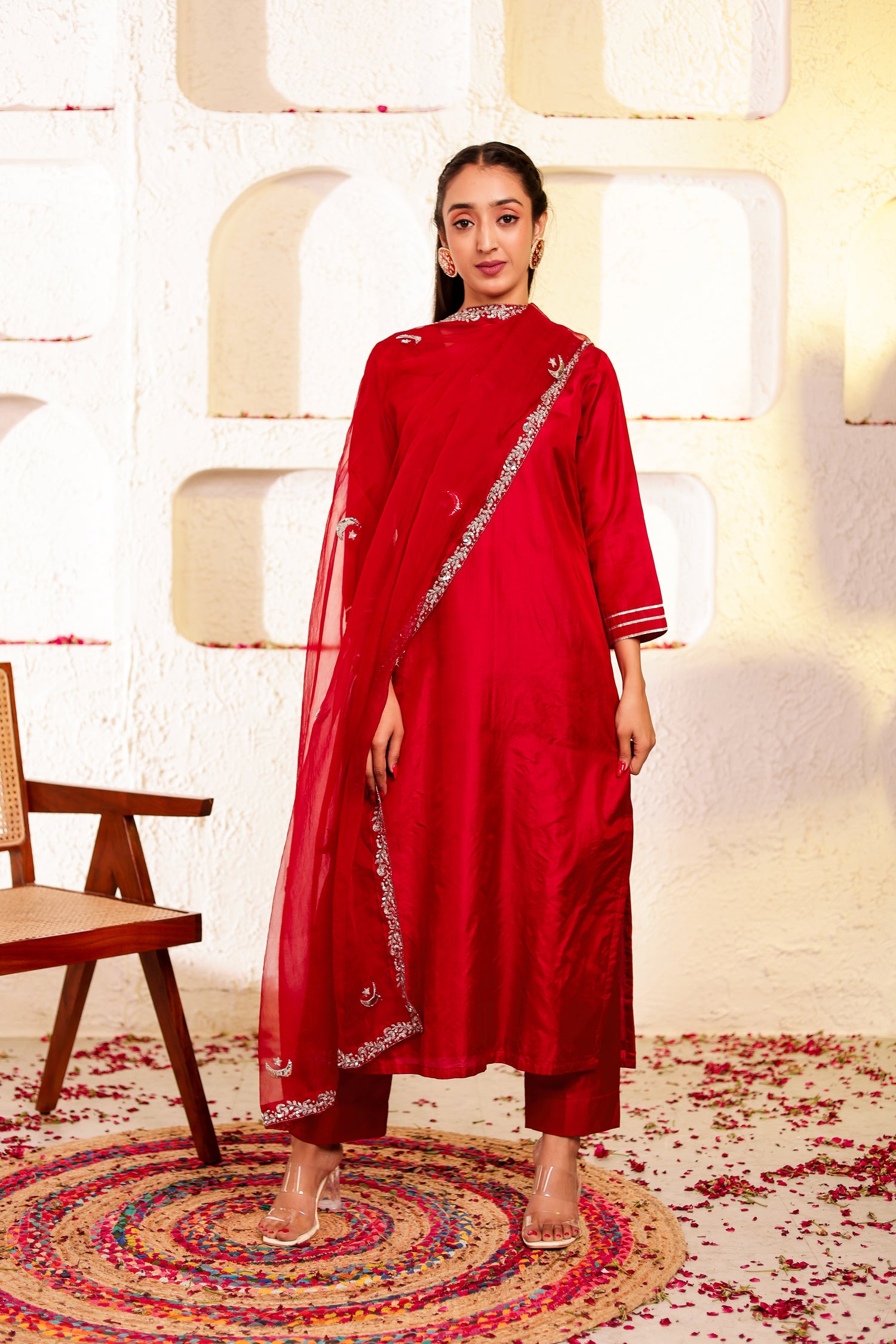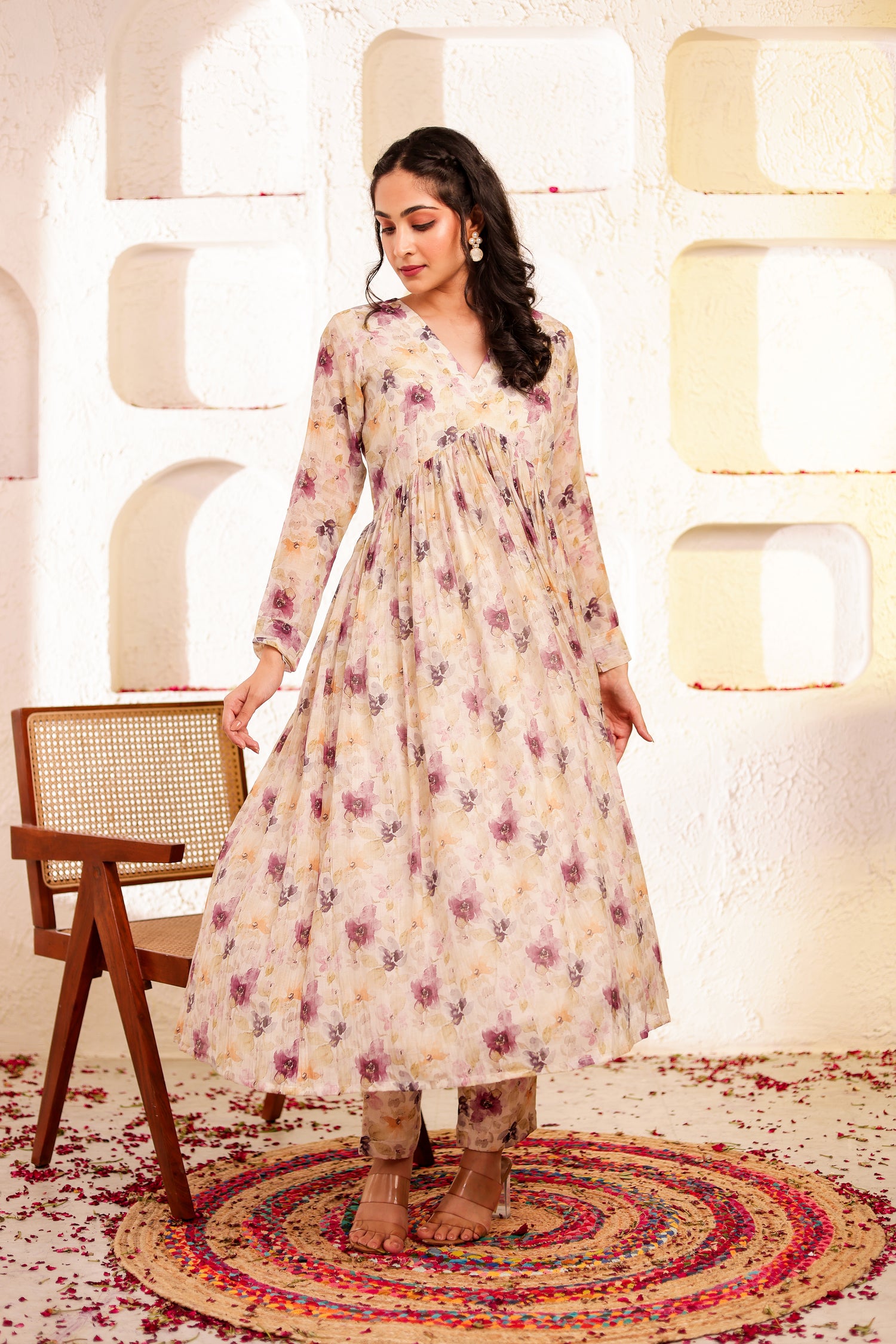 CHINNON SILK HANDEMBROIDERED ANARKALI SET