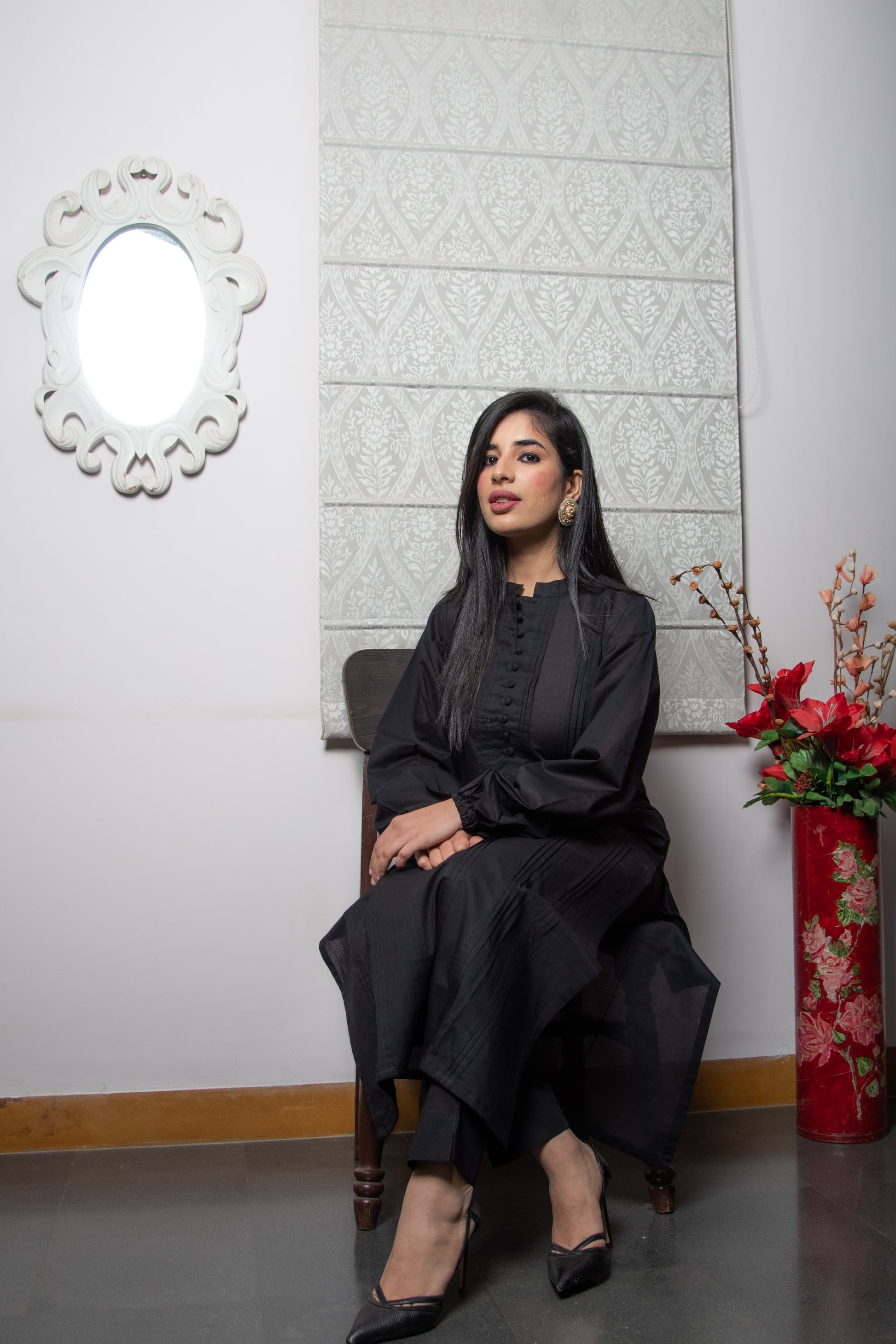 Make a style statement in our plain black cotton elegant ensemble that will you at ease at all the times.